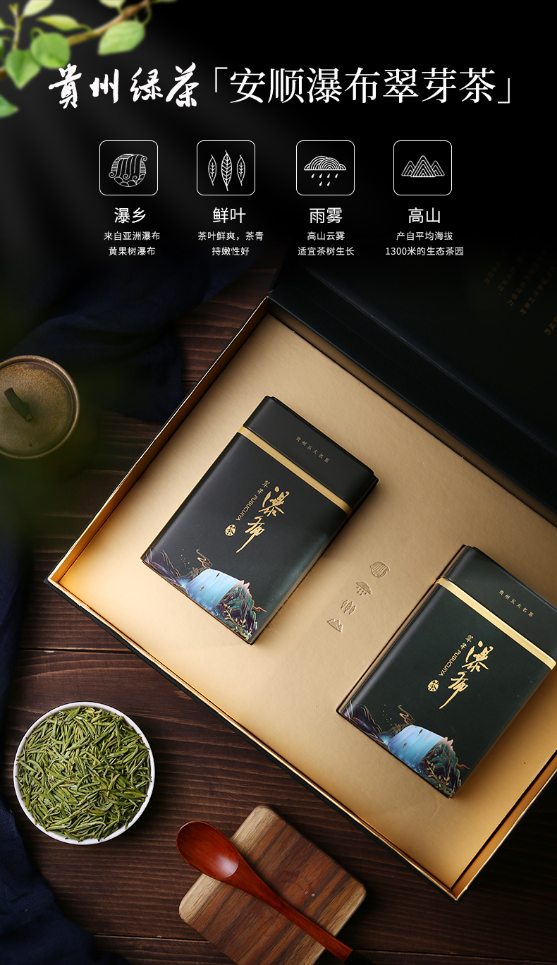 貴州綠茶 安順瀑布茶2021新茶 特級翠芽200克禮盒裝