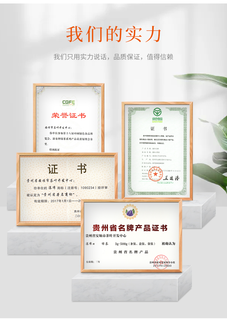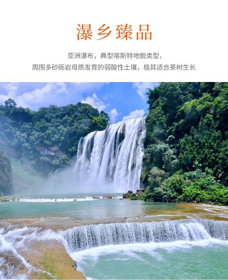 瀑布茶品牌是安順市人民政府主打茶葉品牌,省級(jí)重點(diǎn)打造區(qū)域公共品牌,屬貴州五大名茶,先后獲得獲“中國(guó)農(nóng)產(chǎn)品區(qū)域公用品牌”、“貴州省著名商標(biāo)”、“貴州省名牌產(chǎn)品”等榮譽(yù)稱(chēng)號(hào)。近年來(lái),在各級(jí)部門(mén)大力推動(dòng)下,瀑布茶品牌不斷發(fā)展壯大。截止目前,現(xiàn)有瀑布茶品牌加盟企業(yè)23家,輻射茶園面積200000余畝,其中綠色食品認(rèn)證茶園基地面積7000余畝,有機(jī)食品認(rèn)證基地面積2500畝。擁有“瀑布毛峰”、“瀑布翠芽”、“瀑布紅茶”、“瀑布翠龍”等產(chǎn)品,多次獲得“中綠杯”、“中茶杯”、“華茗杯”等大獎(jiǎng);分別榮獲第14屆中國(guó)國(guó)際農(nóng)產(chǎn)品交易會(huì)金獎(jiǎng)、第18屆中國(guó)綠色食品博覽會(huì)金獎(jiǎng)、“黃山杯”首屆全國(guó)傳統(tǒng)名茶產(chǎn)品質(zhì)量特別金獎(jiǎng)、安順十大旅游商品等殊榮及稱(chēng)號(hào)。