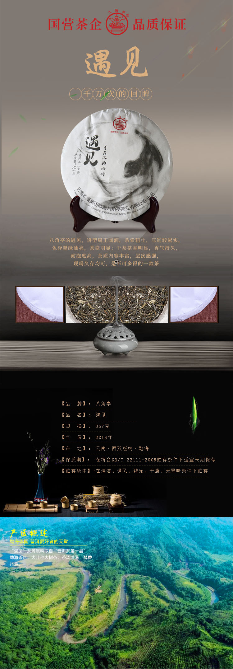 云墾茶業(yè)集團下屬茶葉生產(chǎn)企業(yè)——云南農(nóng)墾集團勐海八角亭茶業(yè)有限公司原名黎明茶廠,是我國歷史最為悠久的茶企之一,曾位列“中國普洱茶十大知名品牌”“十大最受歡迎茶葉品牌”、“中國普洱茶十大暢銷品牌”中,成為今天市場上最有影響力的品牌之一。公司產(chǎn)品獲得“綠色食品”、ISO9001、 HACCP和云茶品牌(YC)4項認證,連續(xù)獲得“云南名牌農(nóng)產(chǎn)品”“云南名牌產(chǎn)品”“云南省著名商標”等品牌榮譽,公司生產(chǎn)的多款普洱茶在歷次專業(yè)評比中多次獲得特等金獎和金獎。在2018第五屆中國企業(yè)五星品牌論壇上,云南農(nóng)墾集團勐海八角亭茶業(yè)有限公司上榜中國普洱茶行業(yè)影響力品牌——“金芽獎”,公司負責人陳勝軍先生獲“陸羽獎”,被授予2017“國際十大杰出茶人”榮譽稱號。