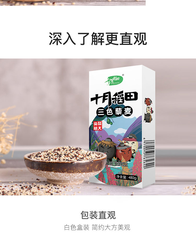 十月稻田三色藜麥紅藜麥、黑藜麥白藜麥雜糧有機(jī)粗糧代餐480g